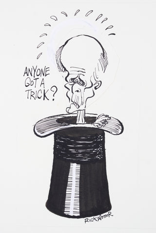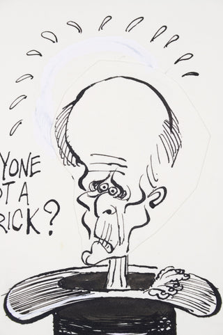 Rick Amor is among Australia’s most collectible artists. Best known for his psychologically incisive landscapes and atmospheric scenes of everyday life, Amor found his artistic beginnings in the world of political cartoons, working for several publications including ‘Overland’, where he was on the board until 1998. Working in this industry, Amor created hand-drawn works that were incisively political - sparking conversation, and responding directly, and honestly, to the world around him. These political cartoons are striking reflections of the diversity of Amor’s artistic skill.