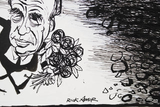 Working in this milieu, Amor produced hand-drawn cartoons that were incisive, immediate, and unflinching — responding directly to contemporary events and sparking public conversation. These works reveal a crucial foundation of his broader practice: an ability to distil complex power dynamics into spare, resonant imagery.