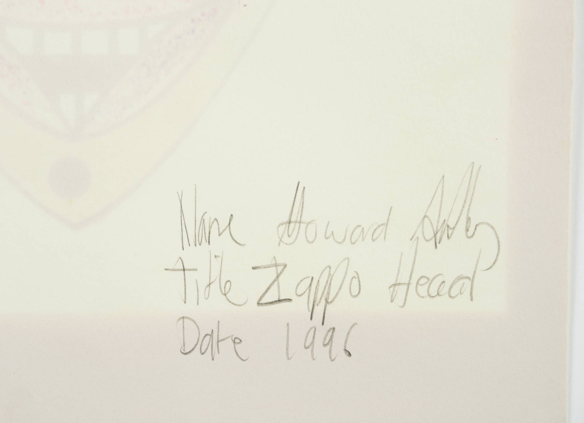 Signed: 'Howard Arkley' lower right and inscribed verso 'Name Howard Arkley / Title Zappo Head / Date 1996'