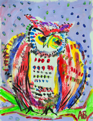 Electric with life and colour, this painting presents the owl as both sentinel and riddle - a timeless emblem of instinct, wisdom, and the worlds we sense but cannot quite see. Colour surges across the surface in confident, expressive gestures, balancing instinctive energy with moments of surprising tenderness. The result is a work that feels at once grounded in nature and untethered by it, pulling the viewer into a lush, imaginative realm. Layers of texture and playful mark-making give the owl a vivid presence, as though it is quietly observing, contemplating, and perhaps keeping a few mysteries of its own.