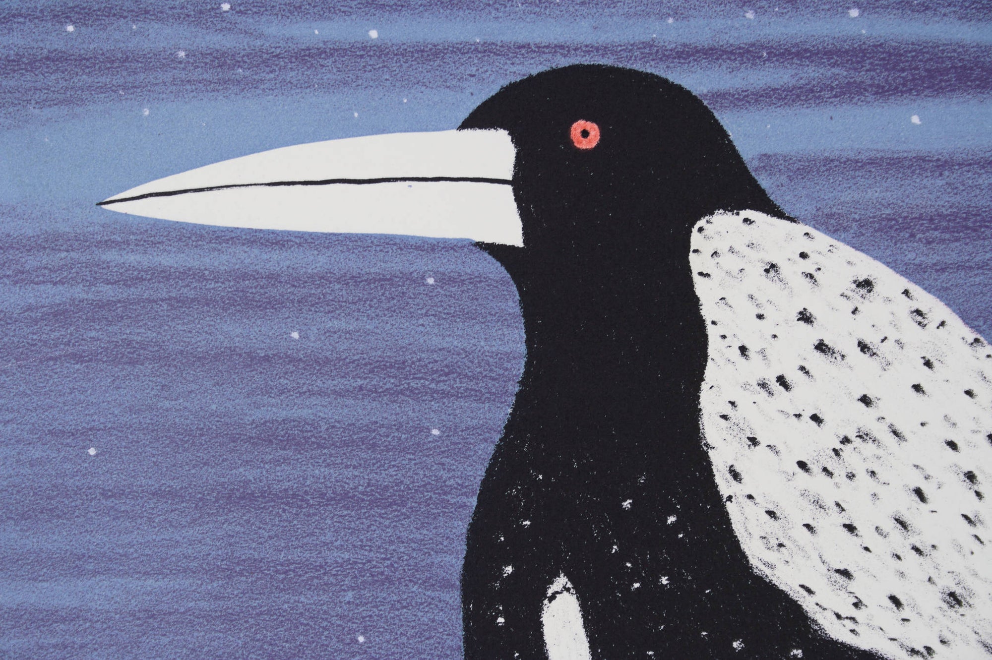 With a career spanning more than forty years, Bowen has exhibited widely across Australia and abroad. His works are held in major public collections including the Art Gallery of New South Wales, the National Gallery of Australia, and the Australian War Memorial. For collectors of contemporary Australian printmaking and admirers of native wildlife, 'Twilight Magpie' is a particularly charming discovery.