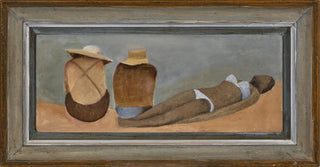 Throughout her oeuvre, Braund repeatedly returned to the beach. Like artists before and after her, she recognised the vital role the beach plays in Australian culture as well as the formal delights of bodies by water. Her beach-goers are pared back to boulders of shoulder, bottom and stomach, captured in a palette that emanates heat as it does here in this original oil painting. As art critic Bernard Shaw observed of her work in 1964, it is “linked with a shrewd and civilised eye for the bizarre and comical”, an awareness that simple does not necessitate seriousness.
