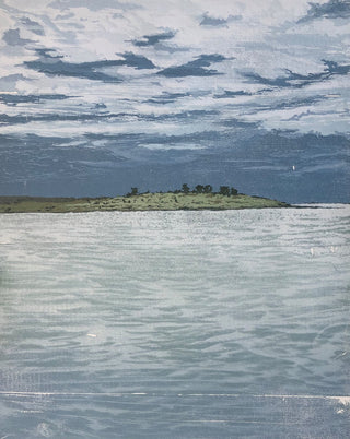 In 'Land and Sea #44' the distant land in the horizon is engulfed by sea and sky, appearing as a solitary focal point in the vivid blues. Cooke’s fascination with the ocean stems from the theory that this is our universal starting place - “the ocean as our origin”. As with many of his works, 'Land and Sea #44' intimately reflects the artist’s relationship with the area in which he lives.