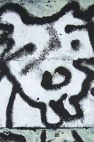 Gorring’s 2025 relief print, “Floyd,” features a dog’s grinning face, with the name “Floyd” written on the lower half of the composition. This print is rich with energy, creating a sense of movement through the overlapping dots of colour spread across the work. “Floyd” relates to a feeling of childlike optimism, similar to the joyful outlook of man’s best friend. This print filters an everyday moment through Gorring’s signature style, connecting to her ongoing interest in the ‘joie de vivre.’