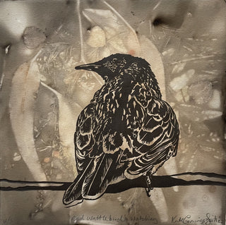 Gorringe-Smith has exhibited throughout Australia, and is held in numerous national collections, including the State Library of Victoria and the Burnie Regional Art Gallery in Tasmania. She has also been a finalist in many major printing prizes, including the Geelong Print Prize in 2021. For lovers of contemporary Australian printmaking, or those enamoured by works featuring native wildlife, ‘Red Wattlebird’s Watching’ is an endearing find.