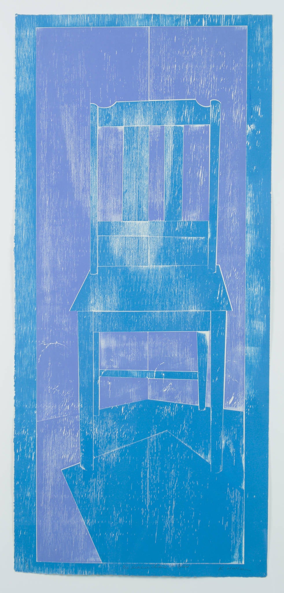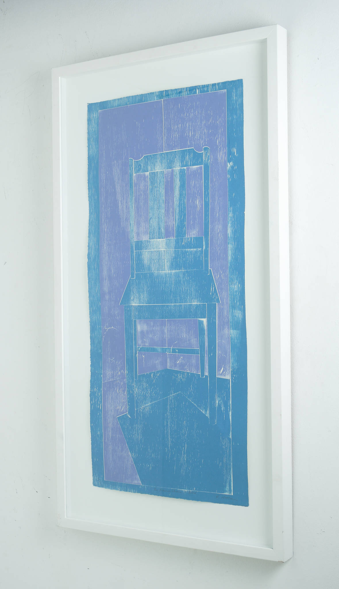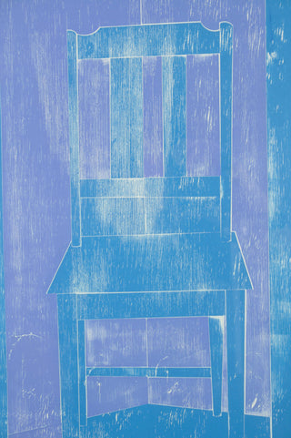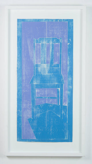 A deeply personal motif in Hattam’s practice, the chair becomes a site of reflection and identity. In this small editioned blue woodblock print, domestic space is rendered poetic - where memory and the self converge. 'The Kitchen Chair - Blue' embodies Hattam’s distinctive language of symbols, transforming everyday objects into meditations on family, time and consciousness.