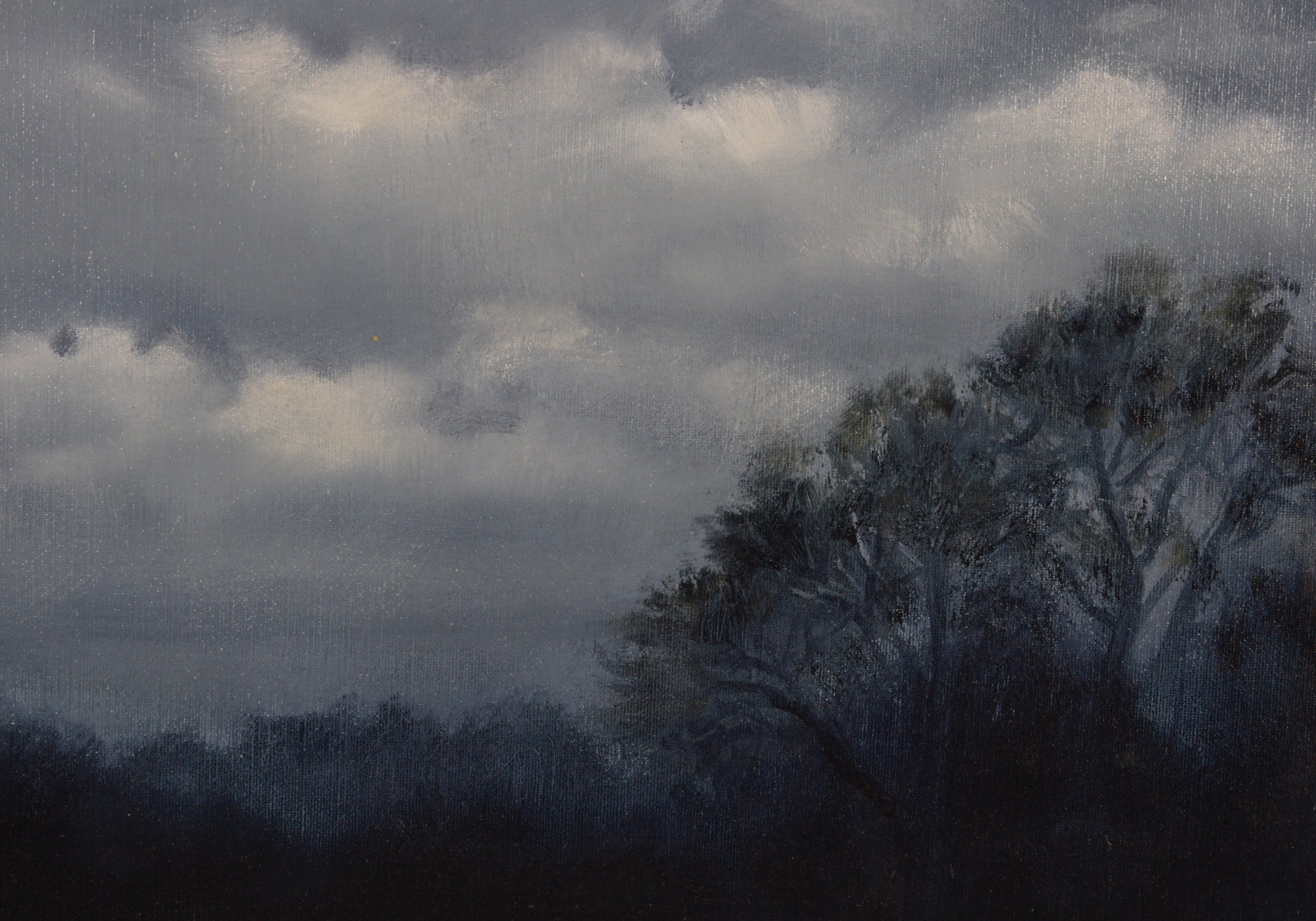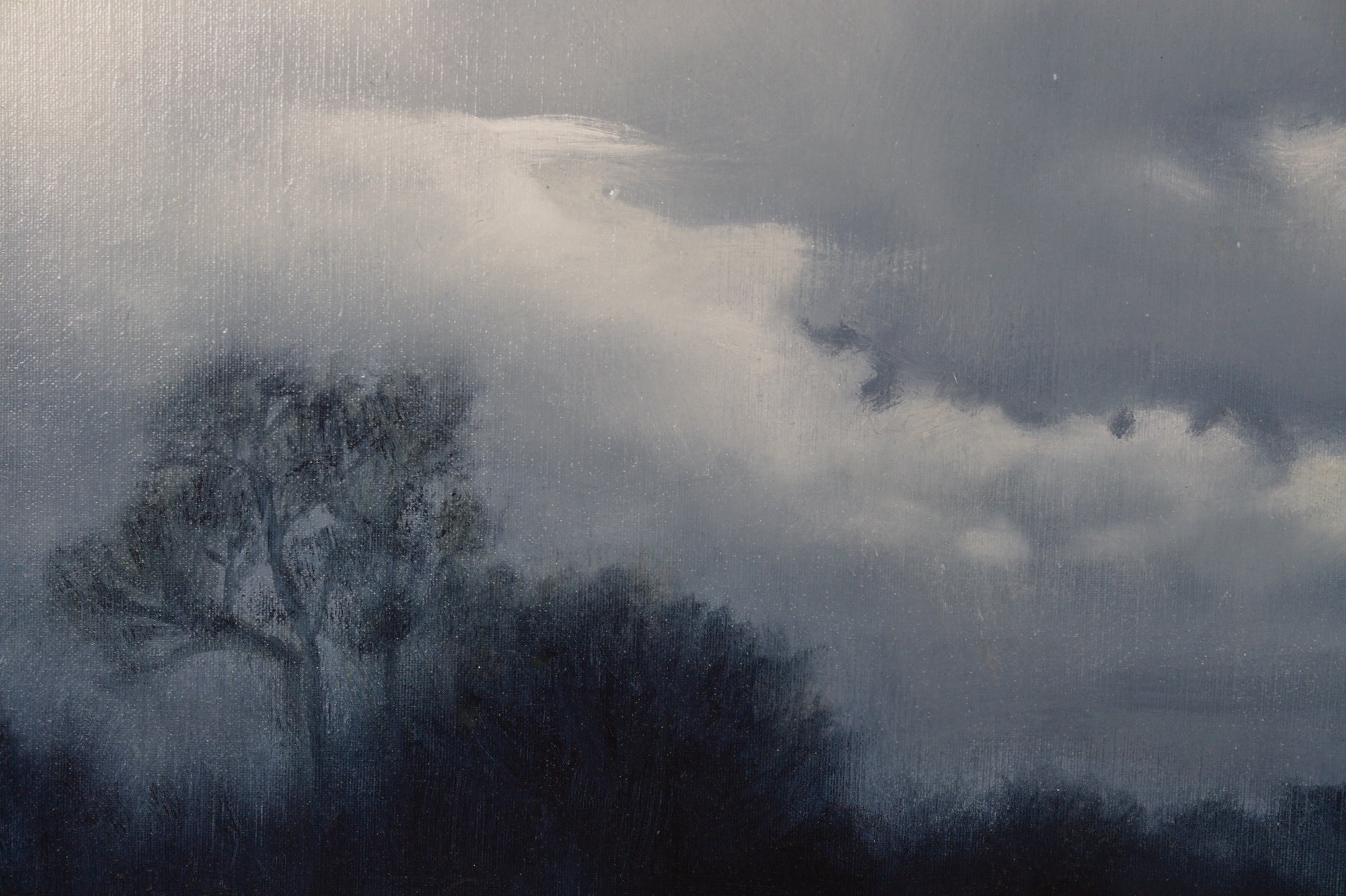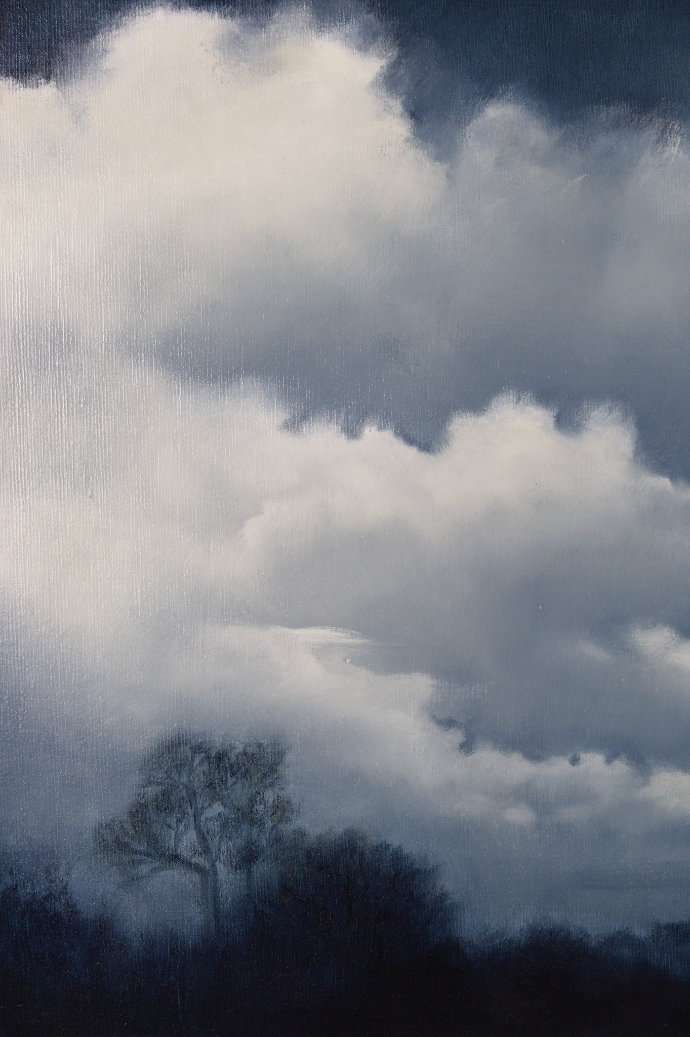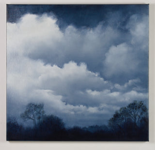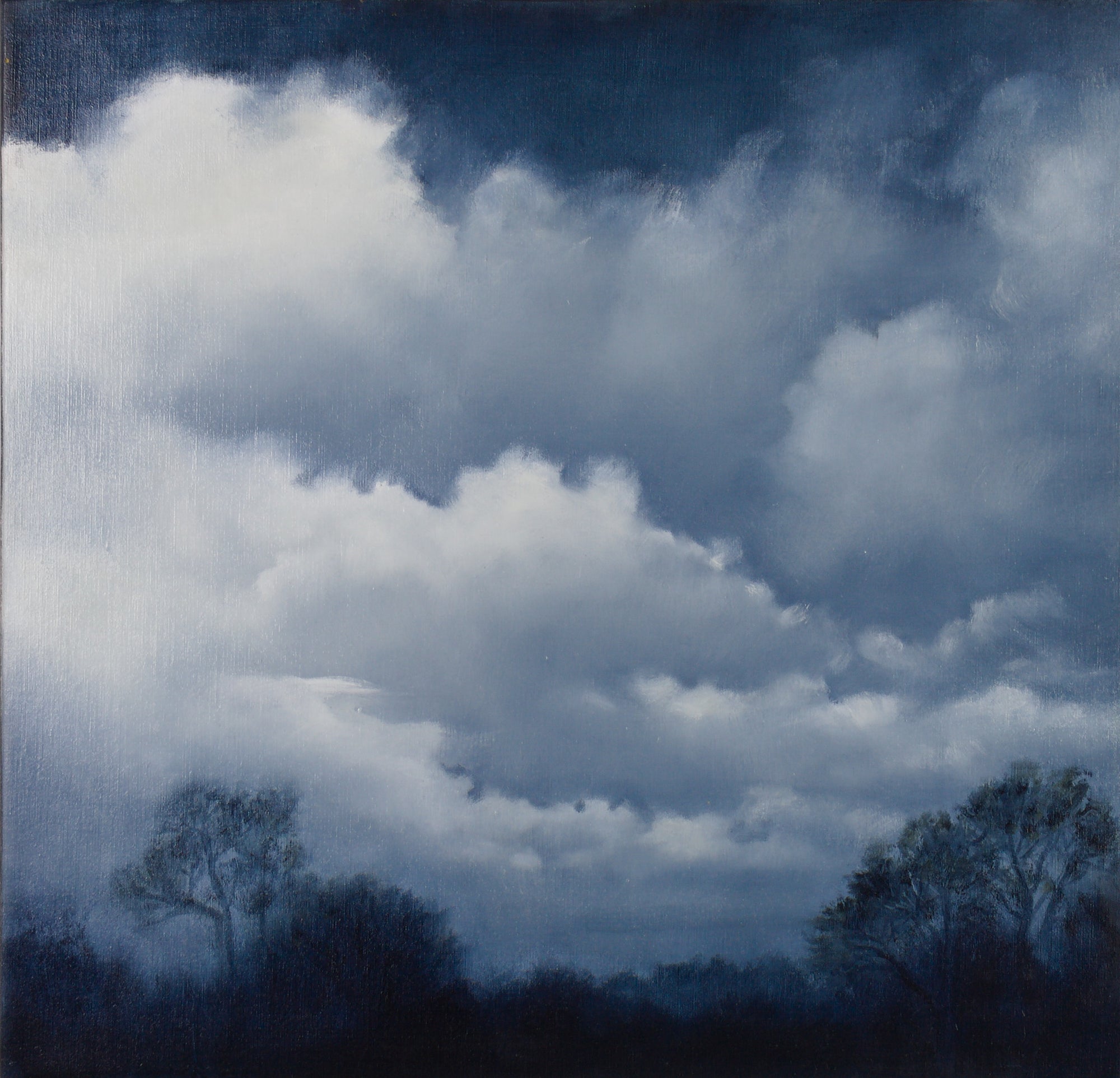 In ‘Indigo Sky’, Henriksen creates a richly detailed and evocative oil painting that is instantly atmospheric. Drawn from the sky and horizon as encountered on walks through her local neighbourhood, this work is skillfully painted, crafted with depth and quiet drama. As with many of her paintings, ‘Indigo Sky’ demonstrates Henriksen’s enduring fascination with light and weather, and her interest in how these transitional elements impact our relationship with the environment.