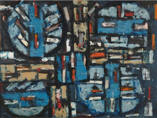 Roger Kemp OBE AO (1908-87) is considered as one of the foremost representatives of Australian abstract art movement. He had developed a unique iconographic language to convey experience through movement and energy. Meditations on human condition and spiritual journey are central to his art. Kemp’s set of tapestries, which adorn the Great Hall of the National Gallery of Victoria in Melbourne, are considered to be among Australia’s most iconic and celebrated works.