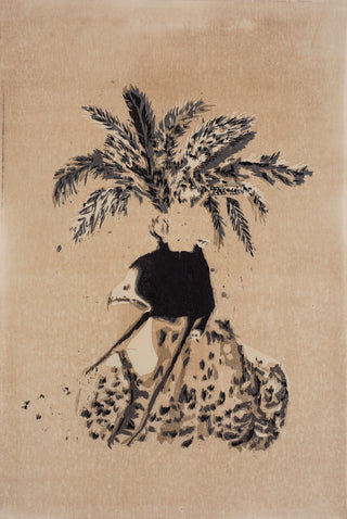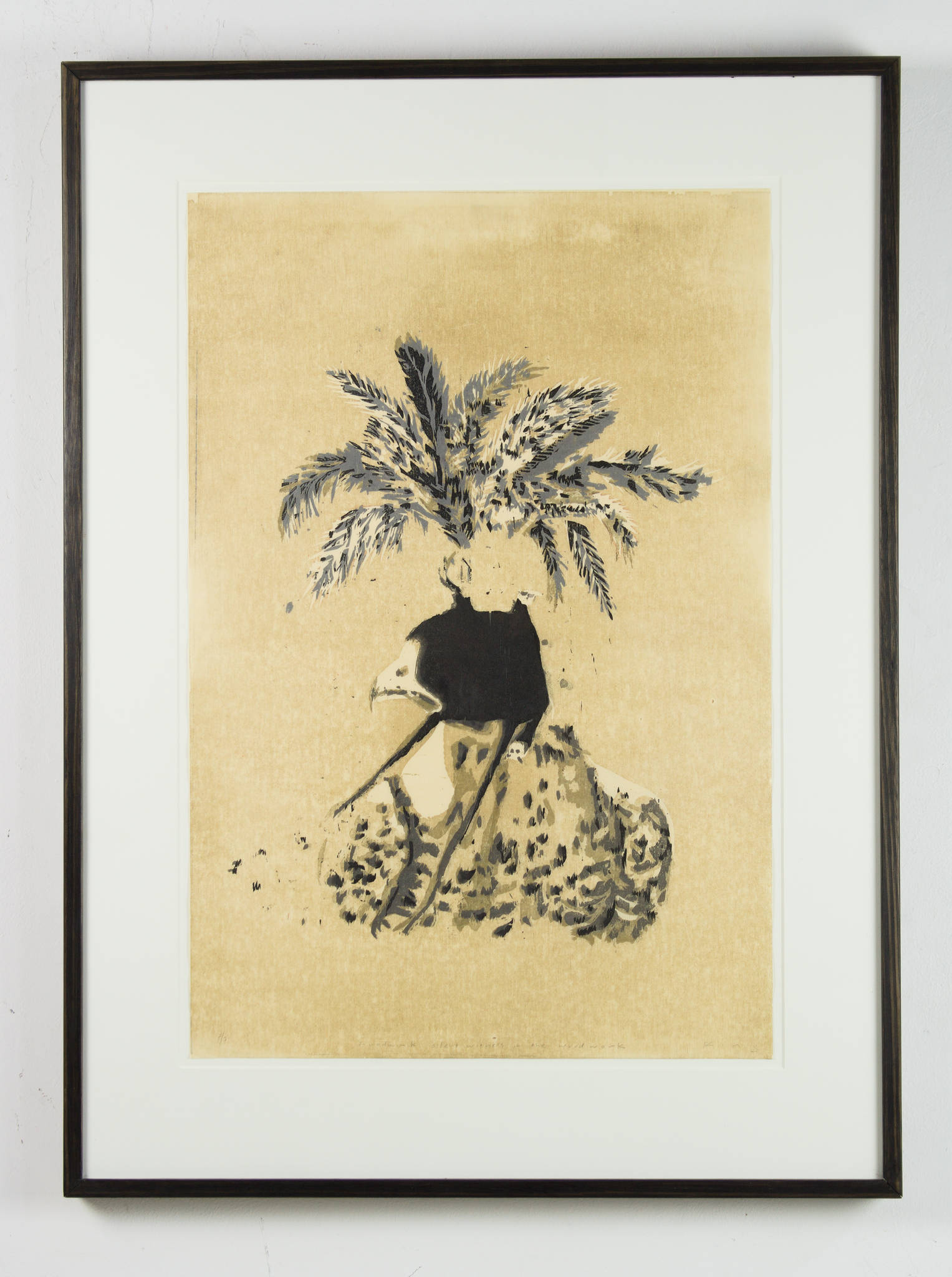 Martin King explores recurring motifs of birds, falconry, and adornment within an expansive and accomplished print-based practice. His work navigates the intersections of nature, narrative, and materiality, often blurring boundaries between image and object, memory and myth.