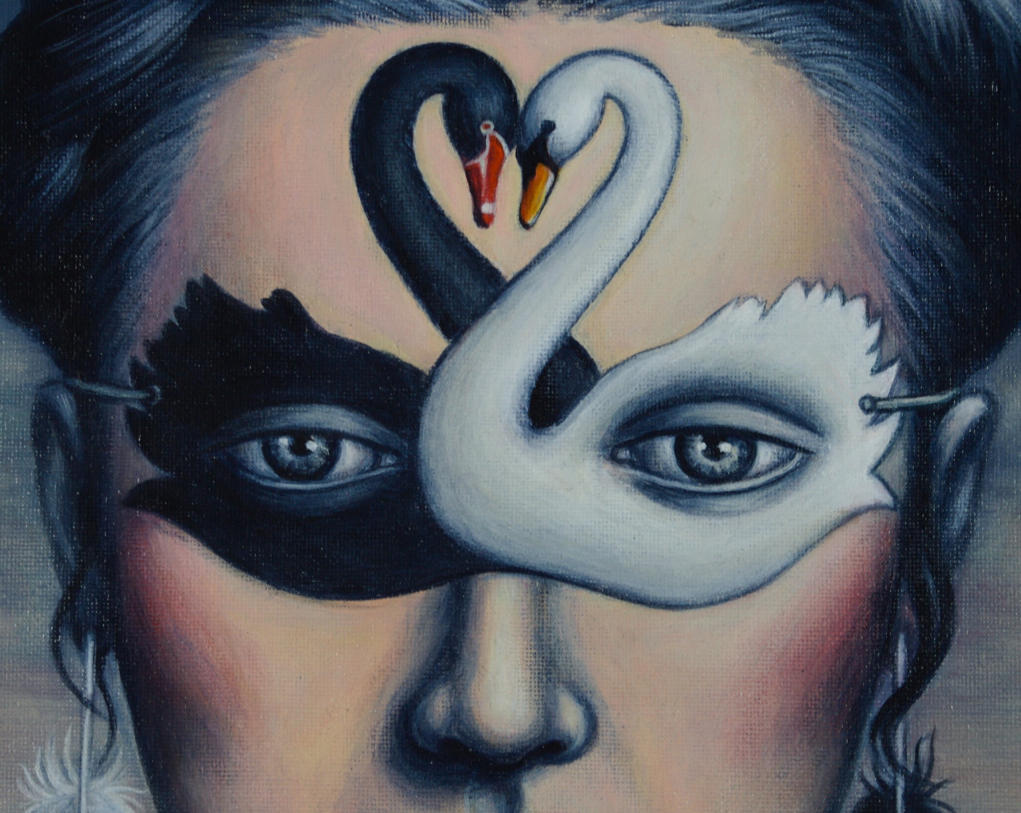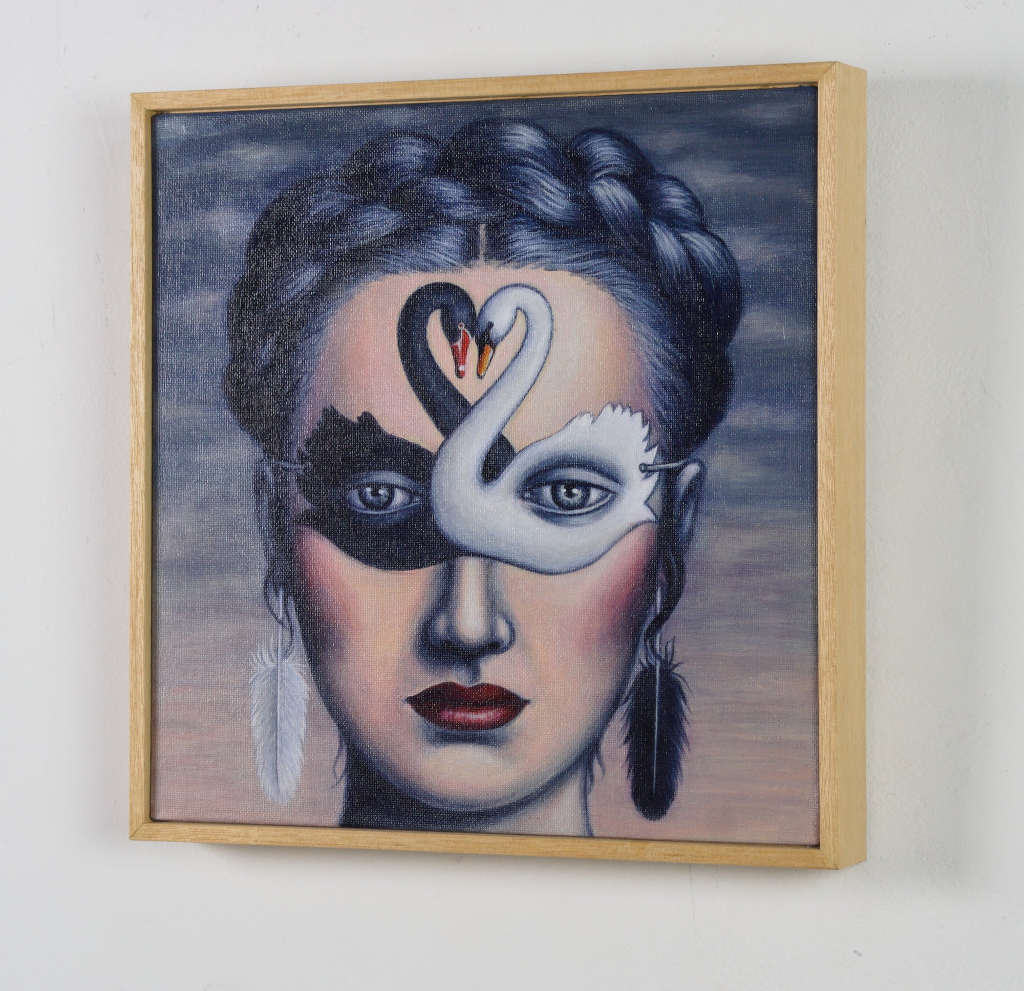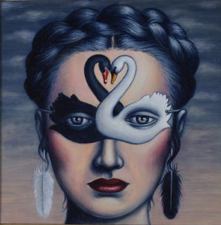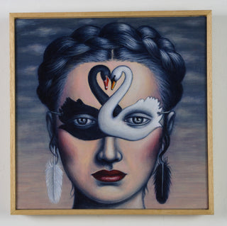 In Klein’s 2024 painting 'Birds of a Feather', this concealment takes the form of two swans - one black and one white - elegantly sweeping across the subject’s face. With perfectly braided hair and carefully applied makeup, the woman at the centre of the painting initially appears to embody a classical ideal of feminine beauty. Yet, in typical Klein fashion, the portrait reveals greater complexity on closer inspection. Although she faces outward, the woman never quite meets the viewer’s gaze, evoking an earlier era in which women were primarily positioned to be looked at - expected to remain poised, restrained, and discreet.
