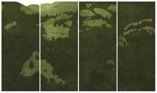 The 2023 etching and aquatint, ‘The Hills at Studenica’ is a print in four parts, featuring a close-up interpretation of the Serbian landscape. Produced during a residency at a 4th century monastery in Studenica, this print reflects on the relatively isolated surroundings Kowarsky found himself within. Deviating from his typical style, this print omits detailed linework, instead, highlighting the density of the Serbian wilderness through layers of greenery. This print offers a space for quiet contemplation, becoming a sanctuary from the busy world outside it.