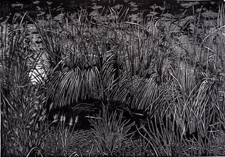 In ‘Lake’s Edge’, Lawry represents a small patch of grass that grows by a lake near her house in Melbourne’s east. Simple in nature, this landscape scene is a testament to Lawry’s artistic ethos to finding beauty in the minutiae of life. In this linocut, as in much of Lawry’s work, ‘Lake’s Edge’ is a meditation on the artist’s relationship to the environment in which she exists.