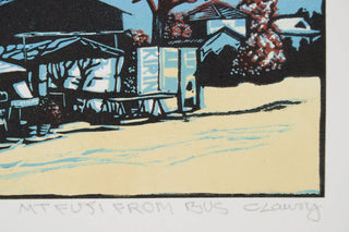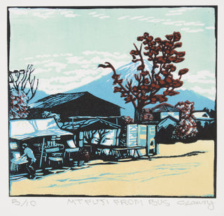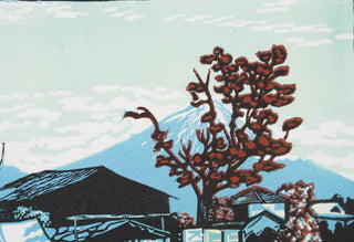 In this series of small reduction linocut prints, Lawry represents her travels in Japan. Using a reduced and colourful palette, Lawry instantly evokes the atmosphere of the land as she experiences it.