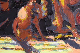 Philippe Le Miere is a Melbourne-based contemporary multidisciplinary artist, known best for his informed artistic references to popular culture, contemporary myths, and art historical subjects. Dynamic and richly layered, Le Miere's 'Study for Banquet' is a re-imagining of one of the National Gallery of Victoria's oldest and most well-regarded paintings.