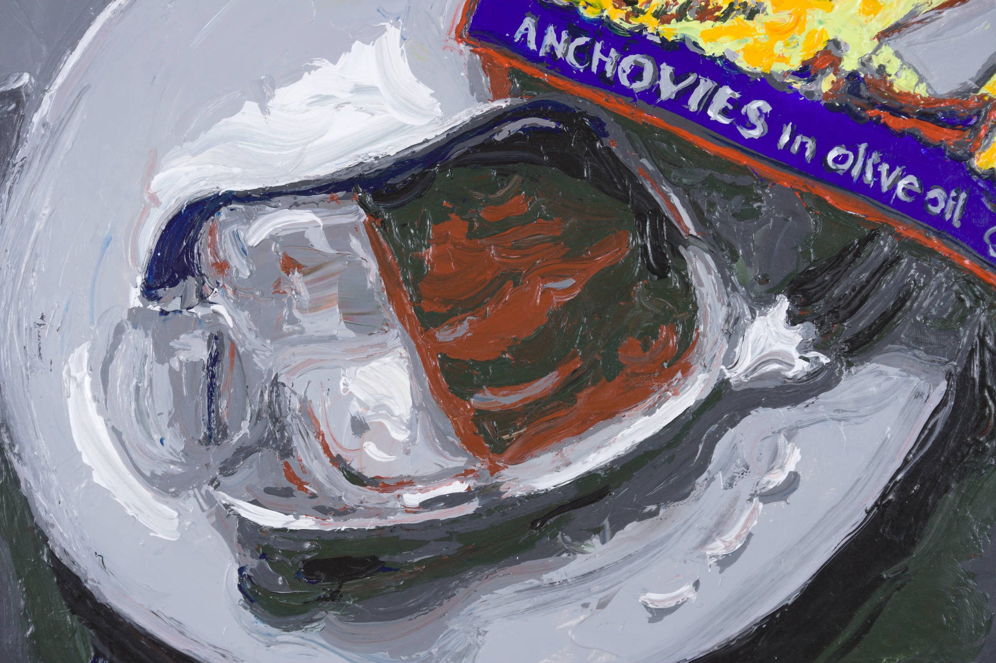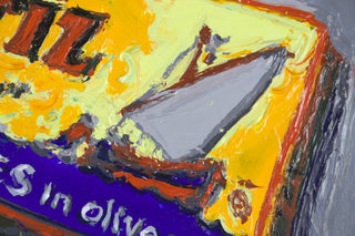 A fork, a plate, a can of Ortiz anchovies — and a surge of painterly energy. In ‘Study for Still Life with Fish’, Philippe Le Miere riffs on the still life tradition, transforming a simple gourmet snack into a vibrant feast of colour, gesture, and delicious wit. A must-have for collectors with good taste and a playful eye.