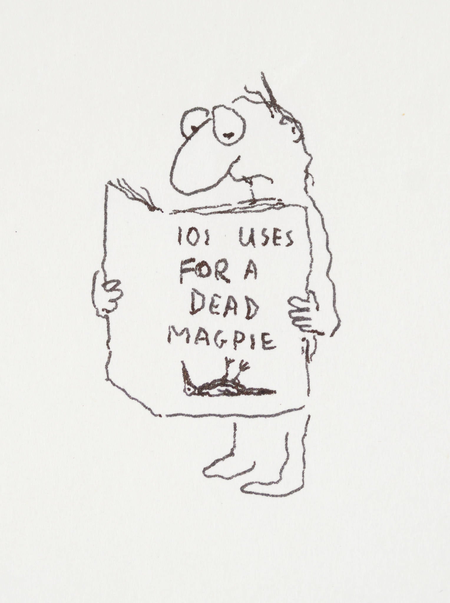 For admirers of Leunig and collectors of works on paper, ‘101 Uses for a Dead Magpie’ is a peculiar find. This work is provenanced from the Leunig family’s private collection.