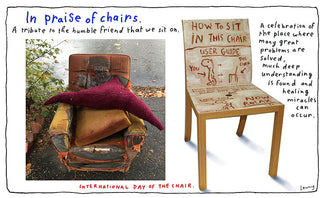 The piece disarms with humour, yet beneath its playful façade lies Leunig’s enduring engagement with the rituals of everyday life, the search for stillness, and the human need for gentle reminders to pause and ‘relax.’ His instantly recognisable line work and dry humour animate the surface, turning the chair into both an object of contemplation and a conversation piece.