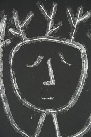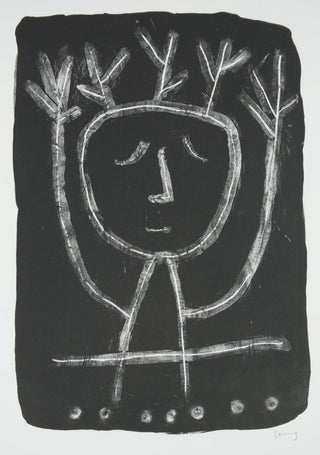 ‘Waiting for Spring’ (1992) is a quietly powerful lithograph that reflects Michael Leunig’s gift for expressing complex emotion through the simplest of images. With just a few deliberate lines, he captures a moment of introspection and patient hope—the kind of thoughtful pause that often sits at the heart of his work.