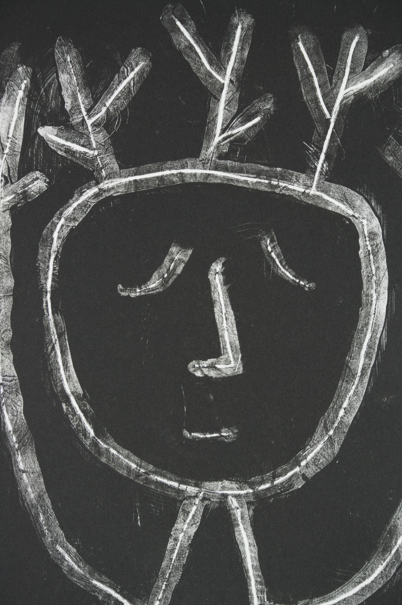 Rendered in lithography, the image carries a soft, velvety depth that gives the scene a grounded, contemplative presence.