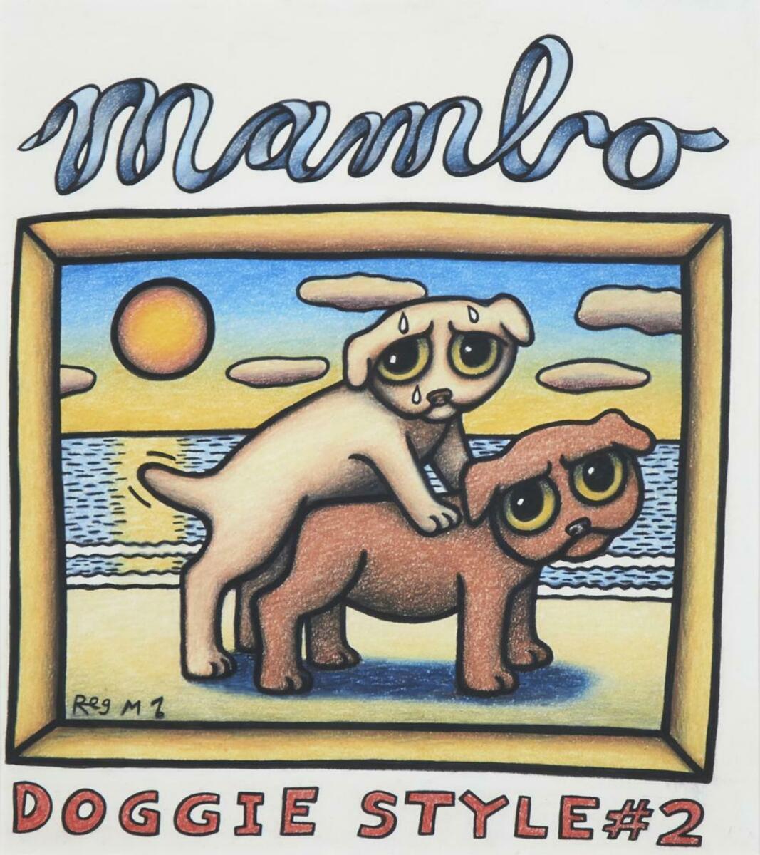 Signed: Signed lower centre 'Reg M', titled lower image 'Doggie Style #2'
