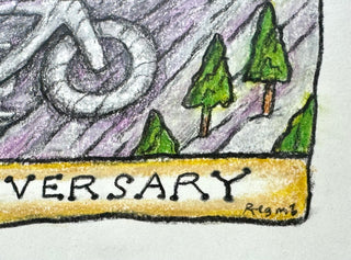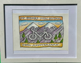 This original drawing pays homage to the Italian music festival No Borders Music Festival. Created for the festival’s 30th anniversary, the work is a joyful merging of Mombassa’s passions—community, art, and music. A wonderful find for collectors of the artist, music lovers, and festival veterans alike.