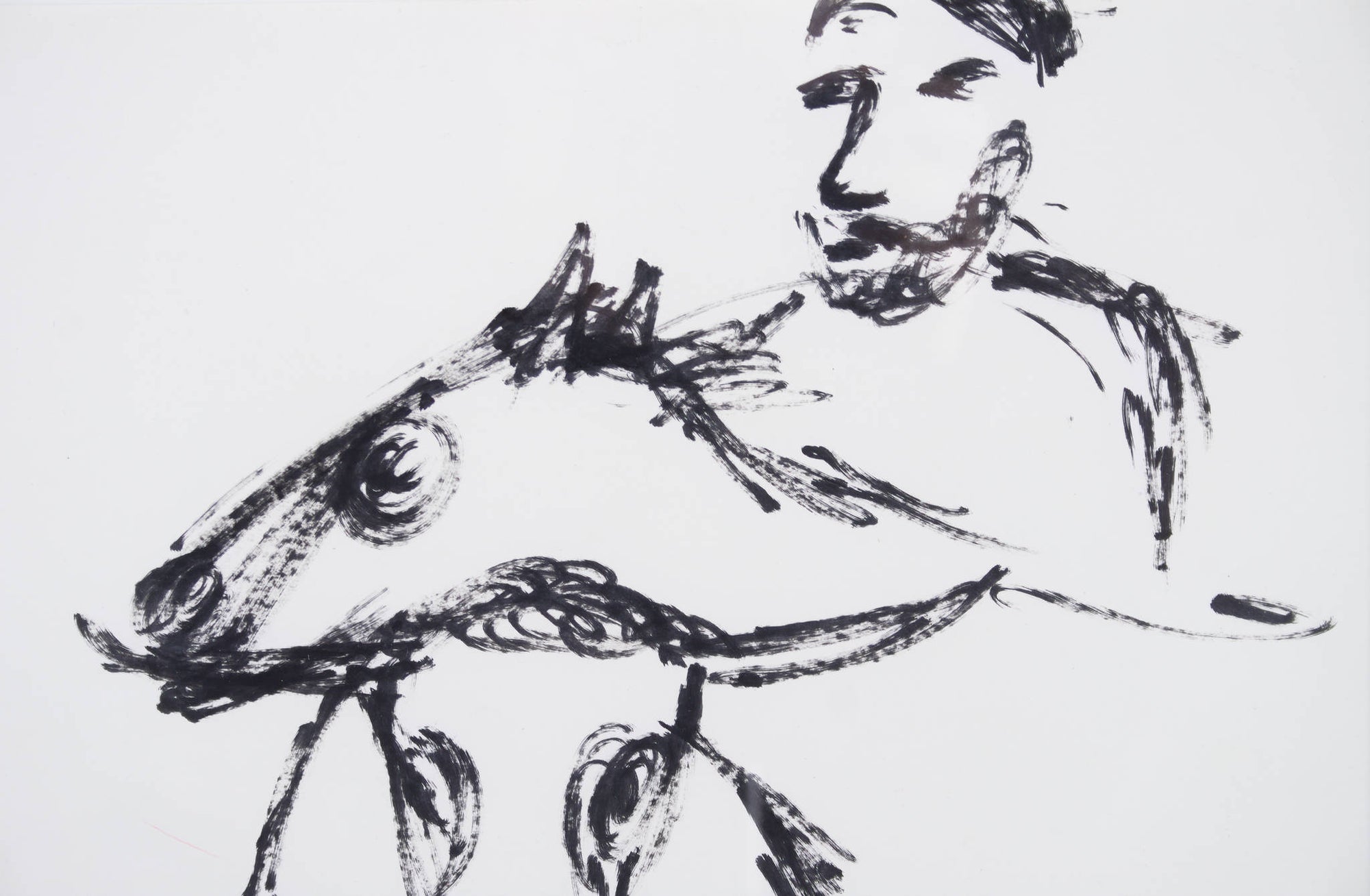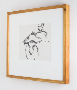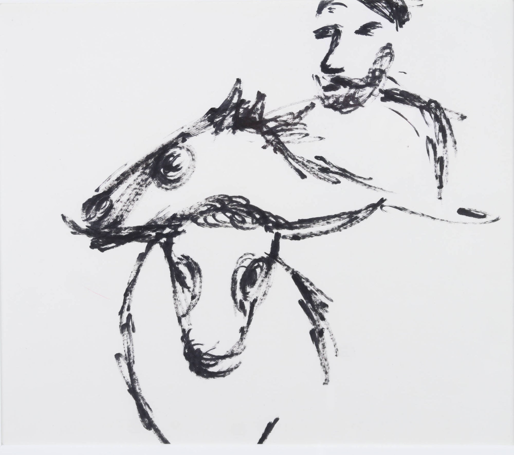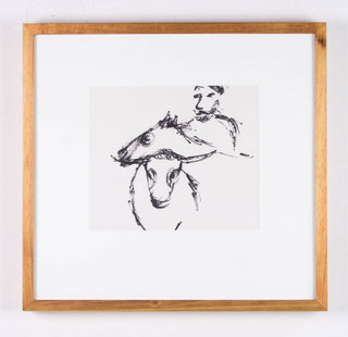 This work features his most iconic subject, Ned Kelly. When he first studied Kelly, Nolan read everything there was to read about him. He saw a tragic figure — a doomed outsider, mythologised in the Australian imagination and a surrogate for the artist’s own feelings. This work, Kelly Bulldogging, captures Nolan’s most iconic subject at full force. The title evokes both the rodeo act of wrestling a steer to the ground and Kelly’s own defiant struggle against authority — a contest of will, grit, and survival.