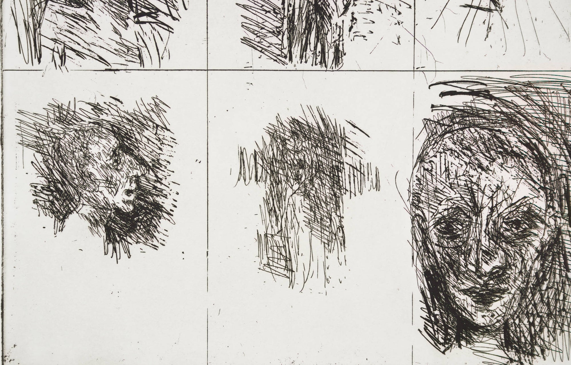 Rendered with Rankin’s globally recognised economy of line, the fractured faces and contorted forms read as psychological imprints-fragments of fear, erasure, and human suffering. As an Artist’s Proof, this impression sits at the core of the edition: a scarce, hand-pulled piece reflecting the artist’s own review and intention.