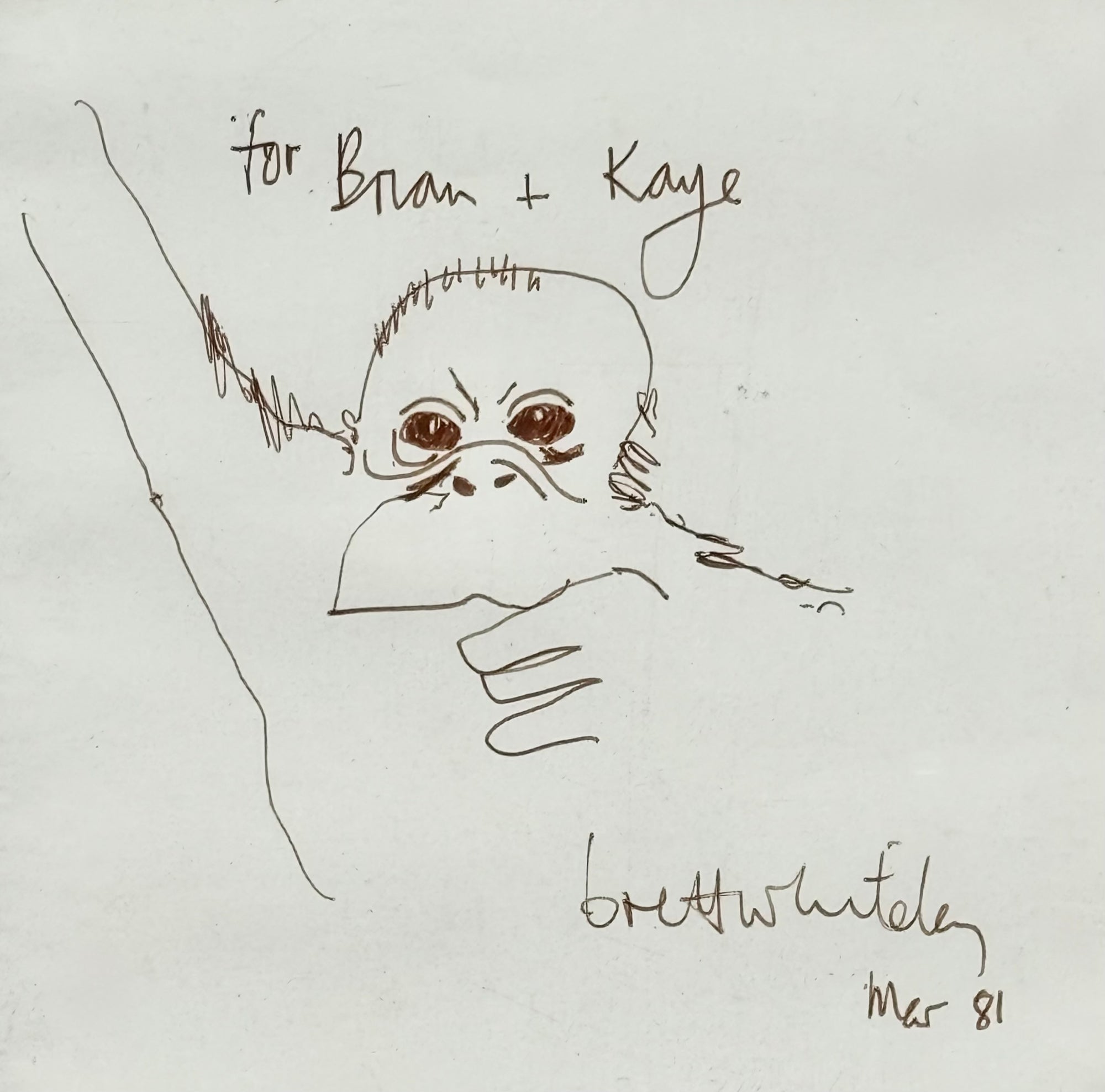 Signed: signed lower right Brett Whiteley / Mar 81; inscribed upper centre: for Brian + Kaye plus signed copy with dedication of the book Zoo by Brett Whiteley